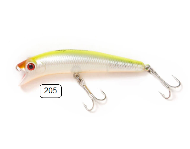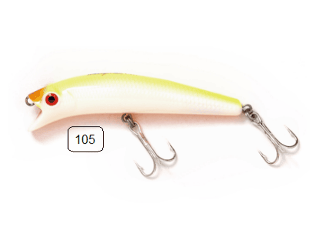 • Isca artificial com 3 ações diferentes, com pitão de arrasto na extremidade superior e lastreada na parte traseira, a posição é semi vertical com aproximadamente 1/3 do corpo fora d'água, quando tracionada é possível de trabalhar em três ações diferentes; Popper, Stick e Meia-Água
