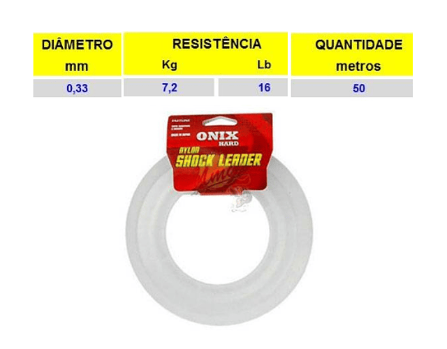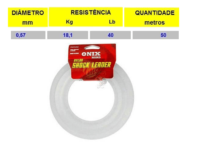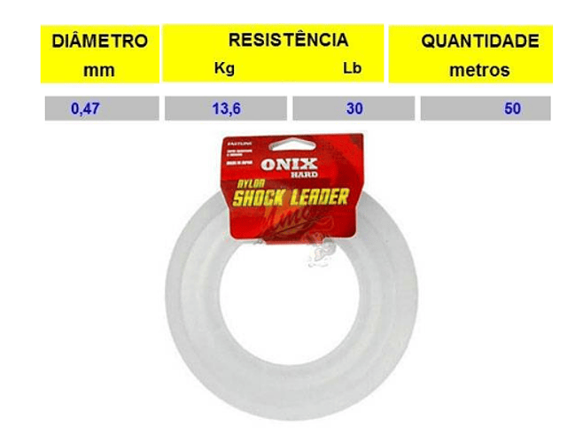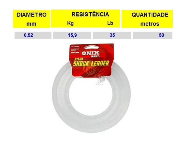 • A linha Onix Hard é um shock leader de monofilamento que pode ser utilizado na confecção de chicotes e líderes na pesca com iscas artificiais e rodada